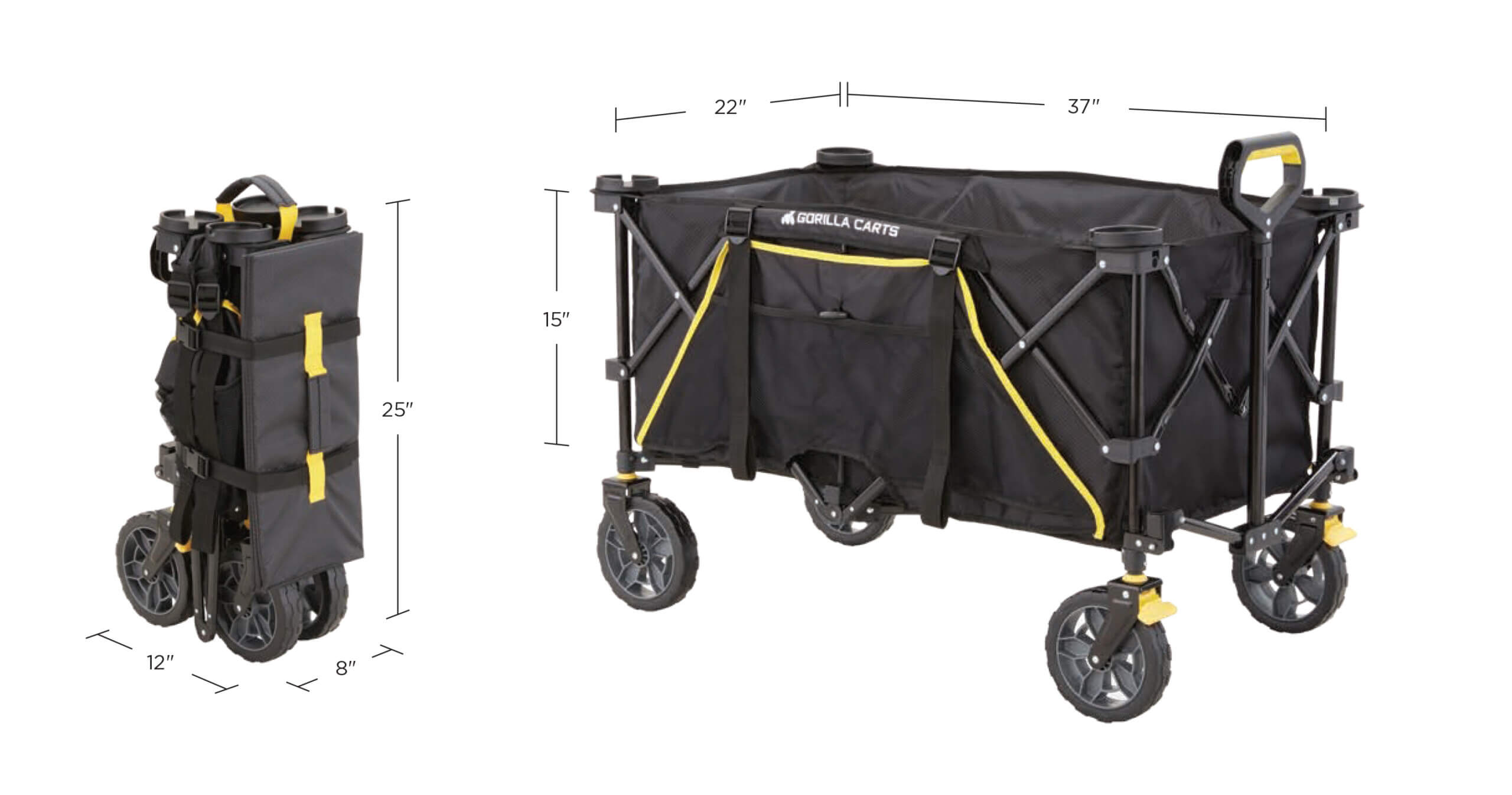 - Easily folds down to compact size for storage and transport – stores in 1/2 the size of comparable carts