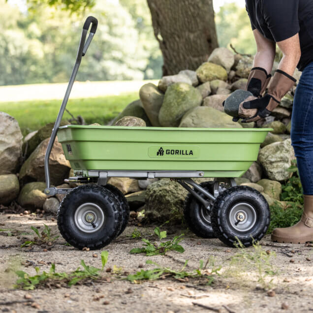 - Balanced 4-wheel stability makes it able to tackle heavy landscaping projects or garden projects