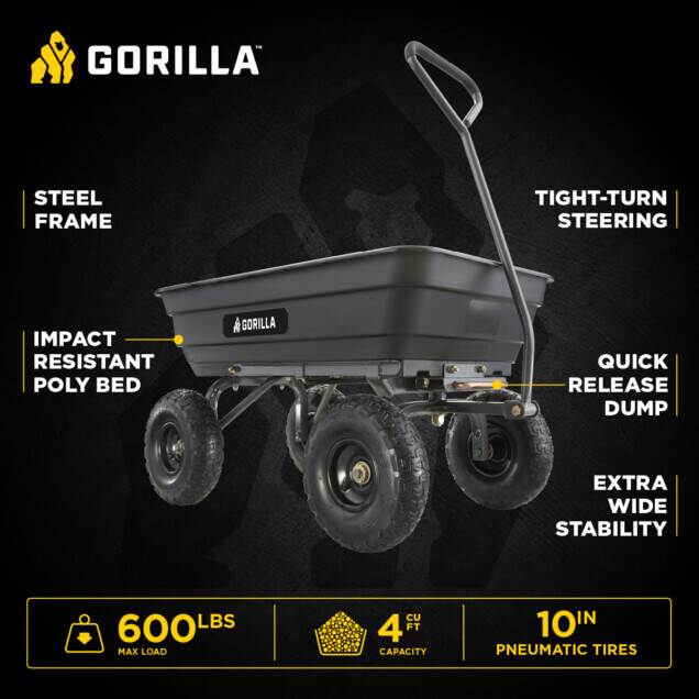 - 600 lb. hauling capacity, perfect for the casual gardener or the lawn professional