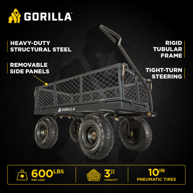 - 600 lb. hauling capacity, perfect tool for use around the garden or lawn