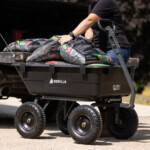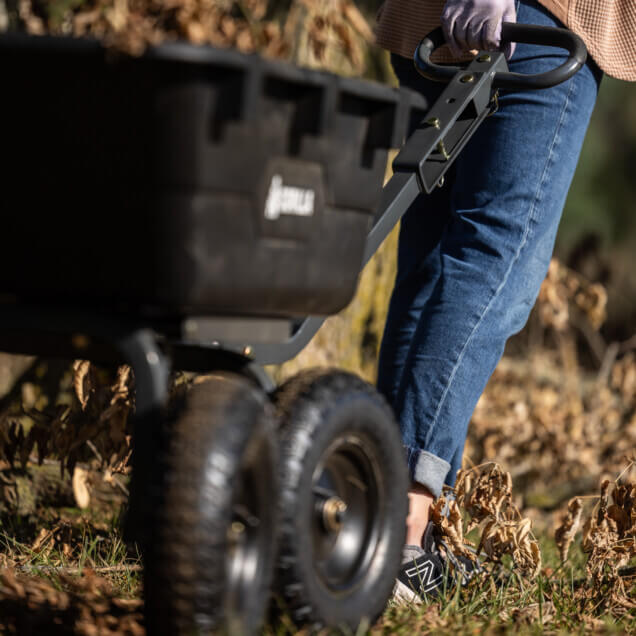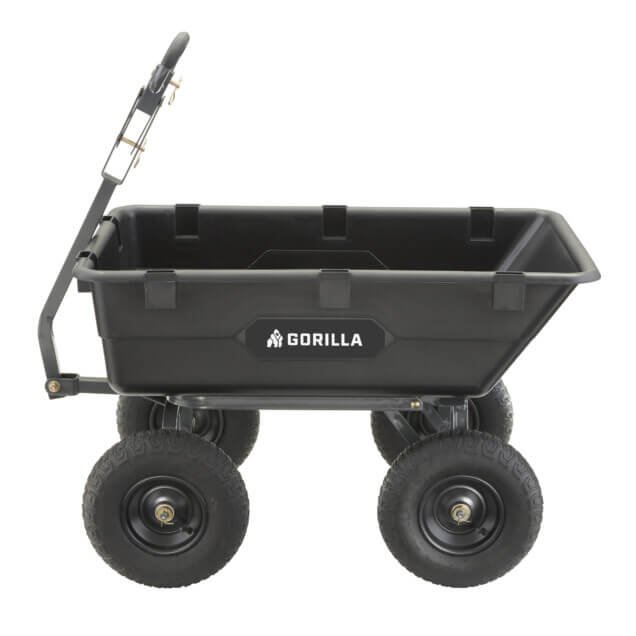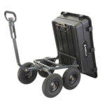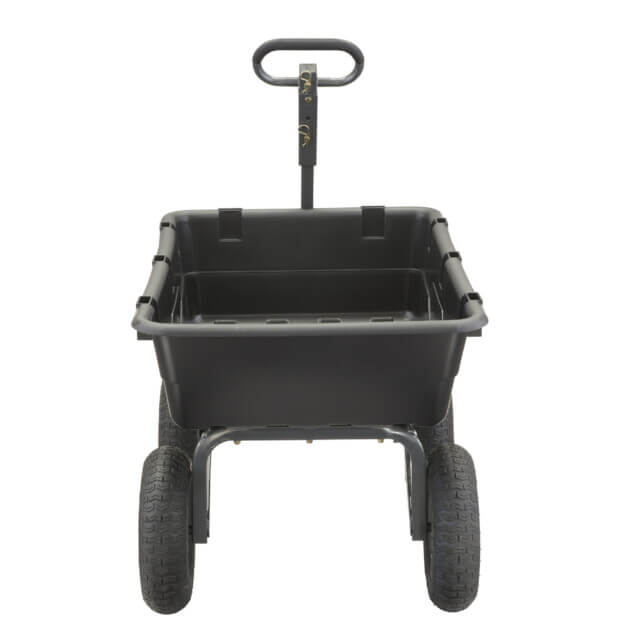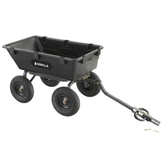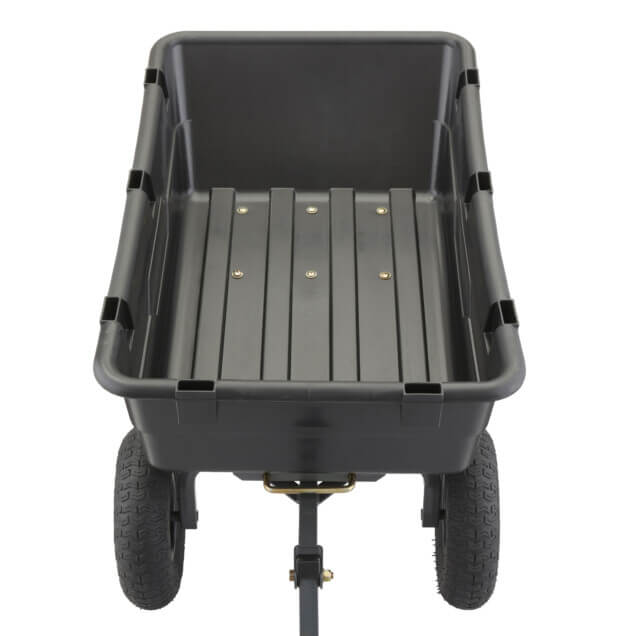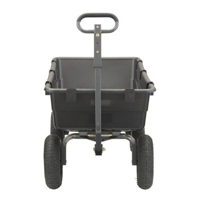 - Patented 2-in-1 handle allows cart to be towed behind a lawn tractor or ATV or pulled easily by hand