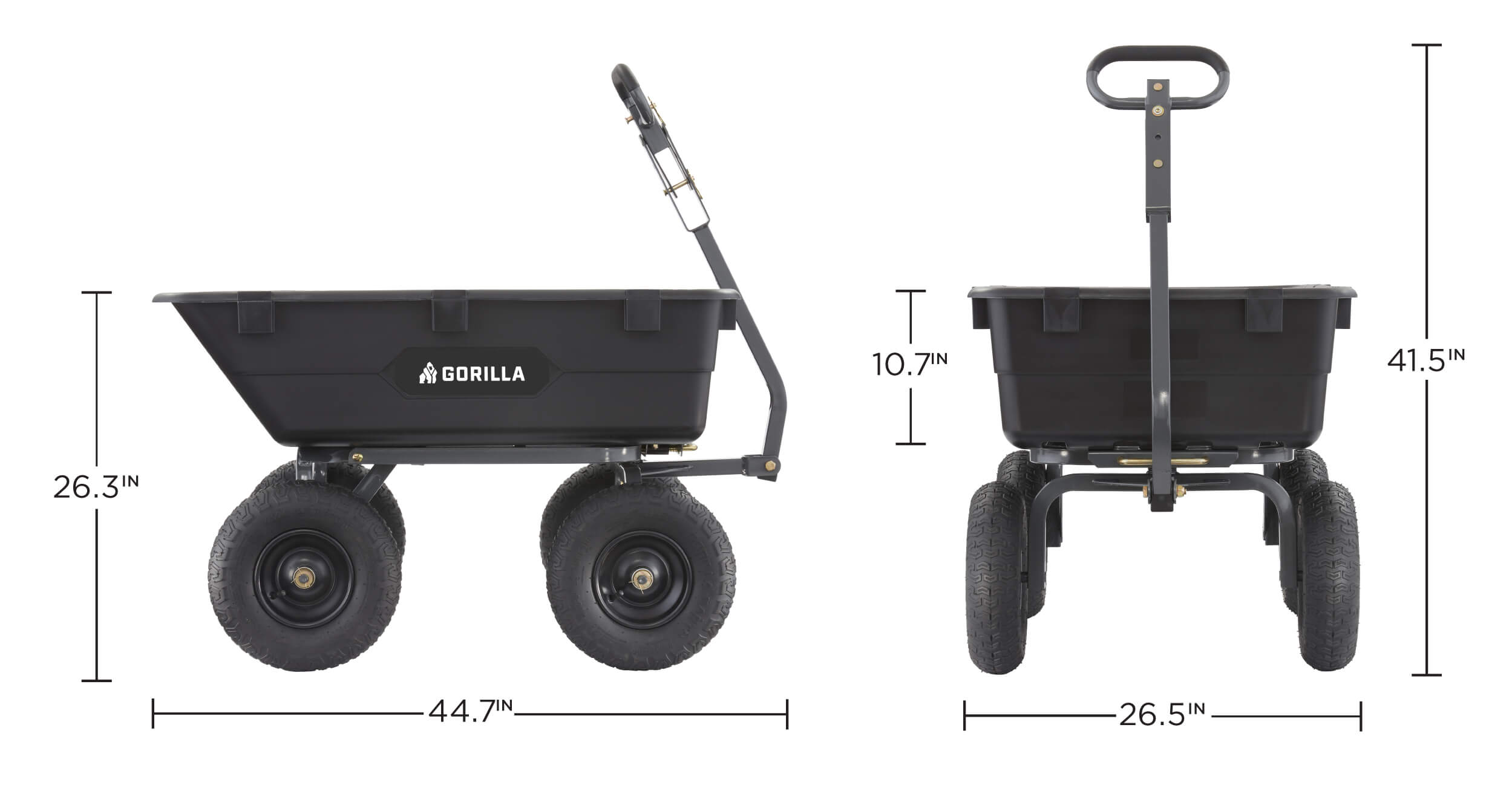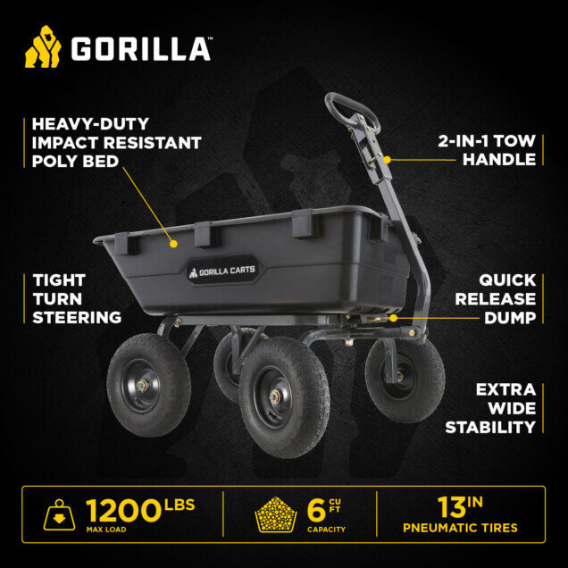 - Patented 2-in-1 handle allows cart to be towed behind a lawn tractor or ATV or pulled easily by hand