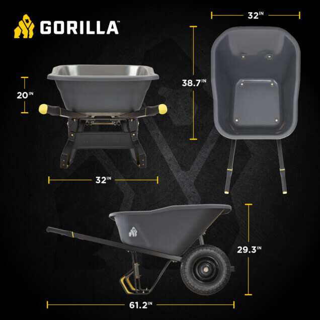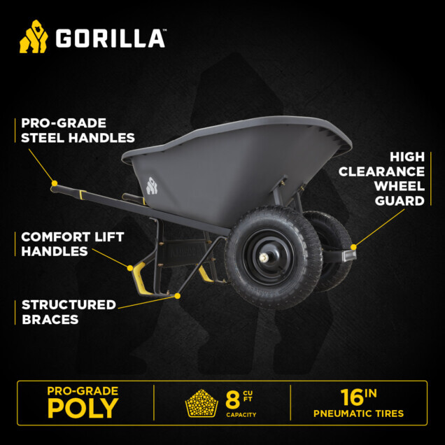 Gorilla 8 cu. ft. Pro Grade Poly Dual Wheel Wheelbarrow