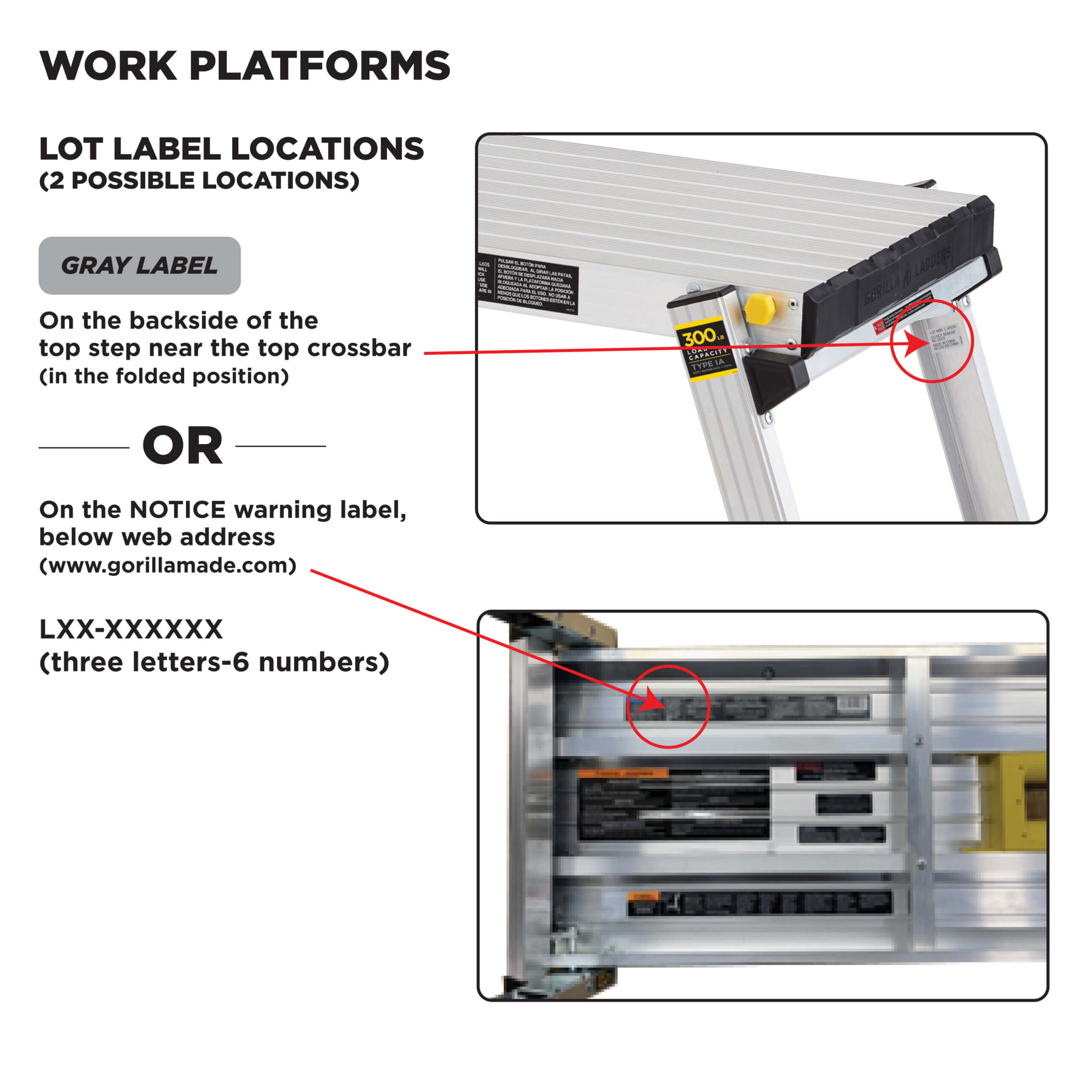 Gorilla Ladders® are warranted against defects in workmanship or materials, under normal use, to the original owner for the useful life of the product.